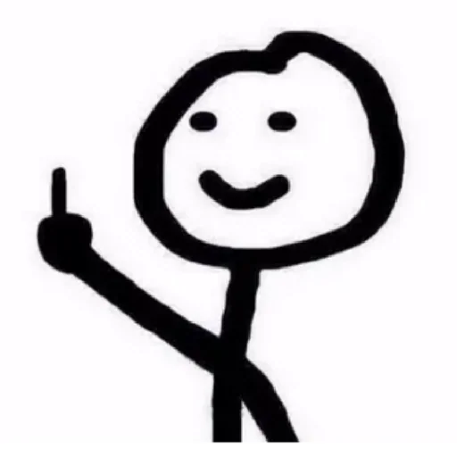 Um desenho simples de uma pessoa com um sorriso, levantando o dedo indicador para cima.