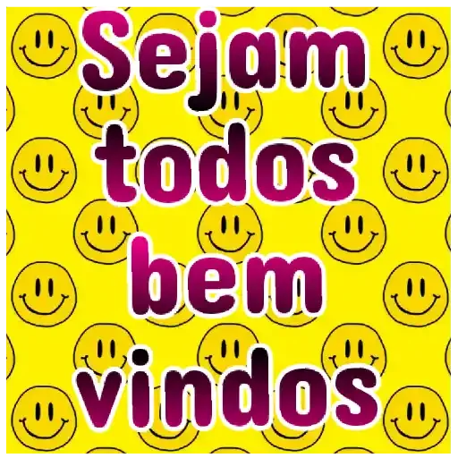 Sejam Bem Vindos em letras grandes e vermelhas com efeito de sombra rosa.