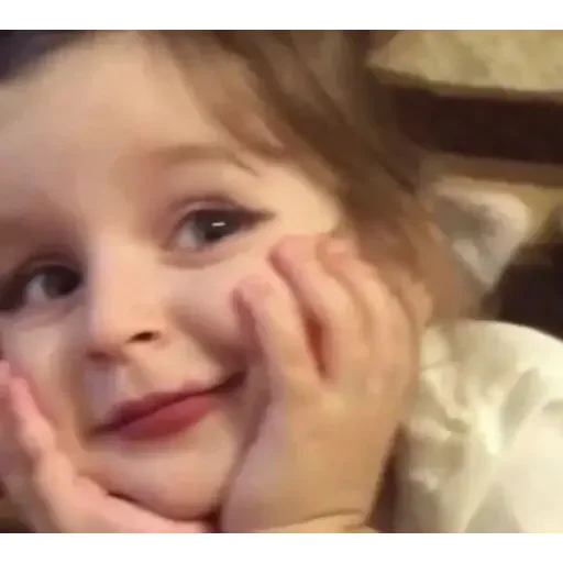 Rosto de uma criança com as mãos no rosto e um sorriso leve.