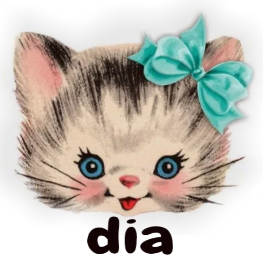 Rosto de um gato fofinho com laço verde no cabelo e a palavra 'dia' embaixo.