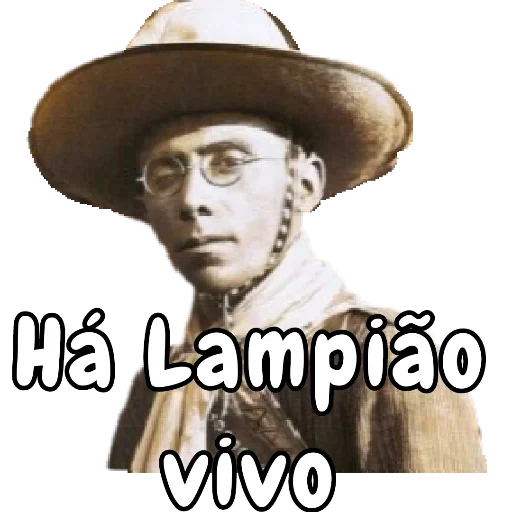 Um homem com chapéu e óculos, com texto 'Há Lampião vivo' sobreposto.