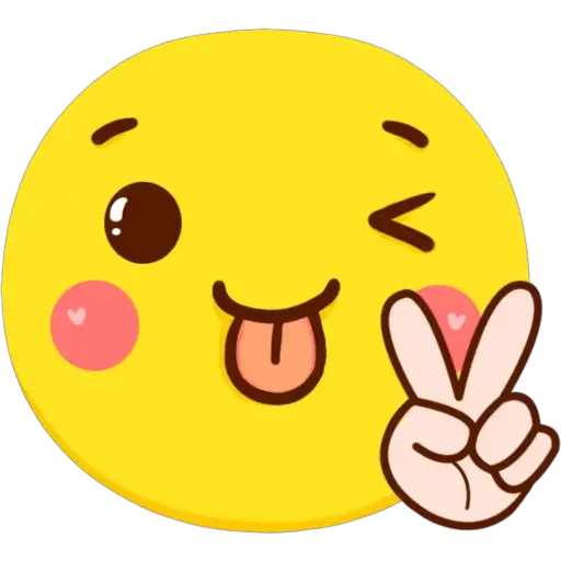 Um emoji amarelo com um gesto de V com a mão, língua para fora e bochechas rosadas.