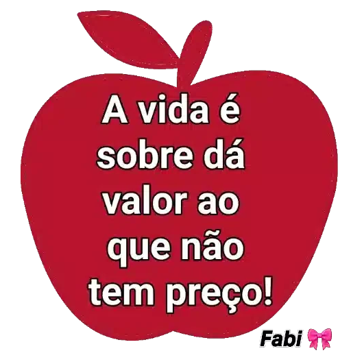 Uma maçã vermelha com uma folha verde no topo, contendo o texto "A vida é sobre dá valor ao que não tem preço!" em letras brancas.