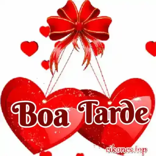 Dois corações vermelhos com um laço vermelho e a frase 'Boa Tarde' escrita em cima. Corações e pequenos corações ao redor.