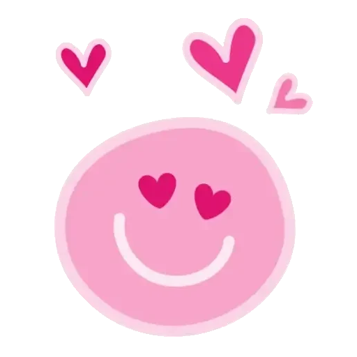 Um rosto sorridente rosa com olhos em forma de coração e três corações rosas acima.