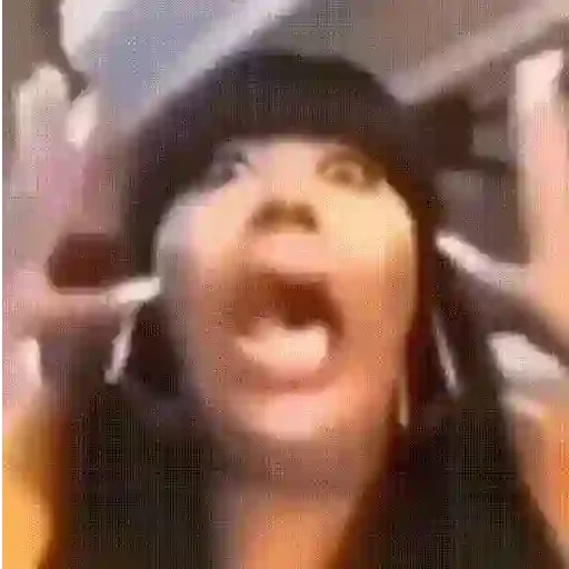 Mulher com expressão de surpresa ou choque, mãos levantadas e boca aberta.