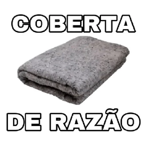 Uma coberta cinzenta dobrada com as palavras 'COBERTA DE RAZÃO' em letras grandes e pretas.