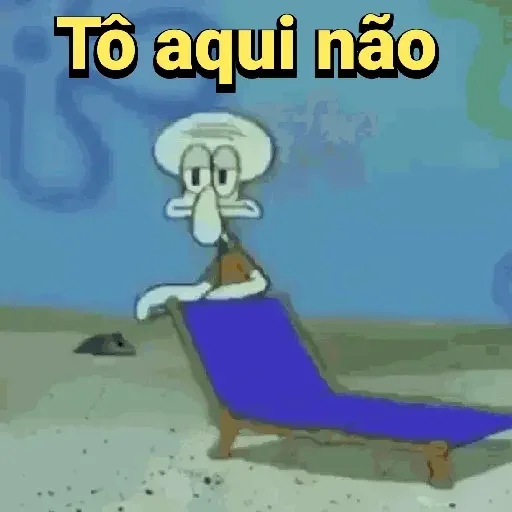 Um desenho do personagem Squidward do desenho 'Bob Esponja' sentado em uma cadeira de praia azul, com a expressão facial contrariada e o texto 'Tô aqui não' em amarelo com contorno preto.
