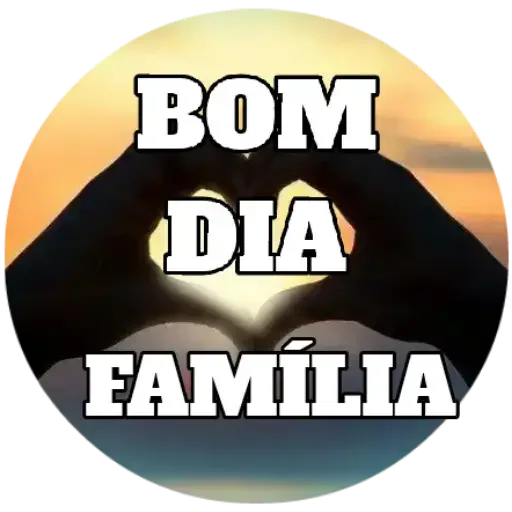 Mãos formando um coração com o sol ao fundo e o texto 'BOM DIA FAMÍLIA' em letras grandes.