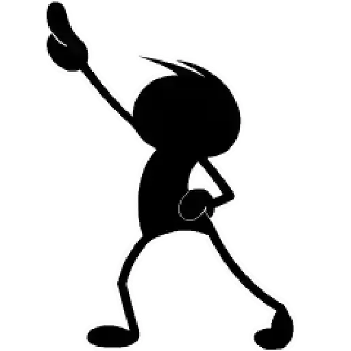 Um personagem de desenho animado preto com um gesto de mão levantada, parecendo dançar ou se expressar.
