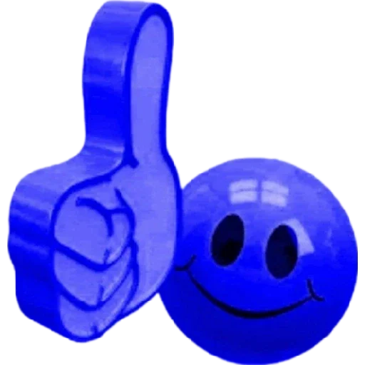 Um polegar para cima e um smiley face azuis, com o polegar indicando aprovação e o smiley mostrando um sorriso.