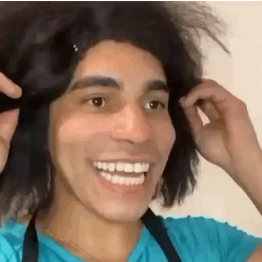 Rosto de um homem com cabelo preto e longo, expressão facial neutra, usando uma corrente de prata.