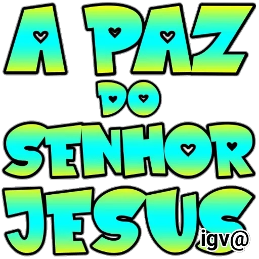 Uma mensagem colorida com a frase 'A PAZ DO SENHOR JESUS' em letras grandes e decoradas com corações. As letras são azuis e verdes com contorno preto.