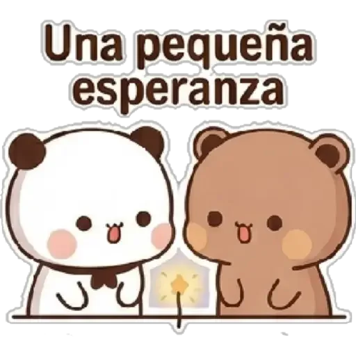Dois ursos fofos, um branco e um castanho, com uma vela acesa entre eles e a frase 'Uma pequena esperança'.