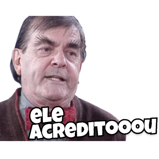 Um homem mais velho com um bigode e careca nas laterais da cabeça, parecendo surpreso ou confuso, com a frase 'Vai…
