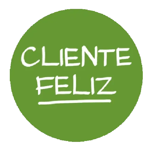 Um círculo verde com o texto 'CLIENTE FELIZ' em branco.