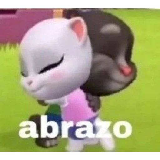 Um gato branco com os olhos fechados e um abraço de um animal marrom, com a palavra 'abrazo' embaixo.