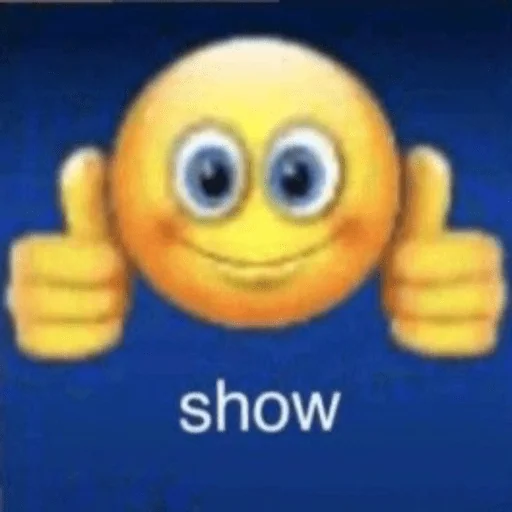 Um emoji amarelo com olhos grandes e polegares para cima, sorrindo, com a palavra 'show' escrita abaixo.