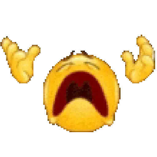 Emoji amarelo com expressão de desconfiança ou preocupação, mão levantada em um gesto de 'não' ou 'tchau'.