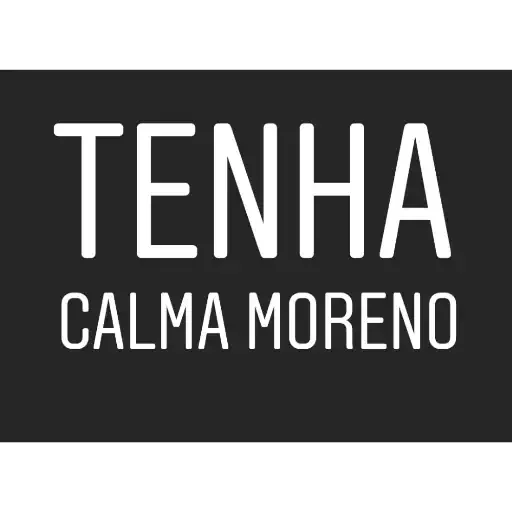 Um retângulo preto com o texto 'TENHA CALMA MORENO' em letras brancas.