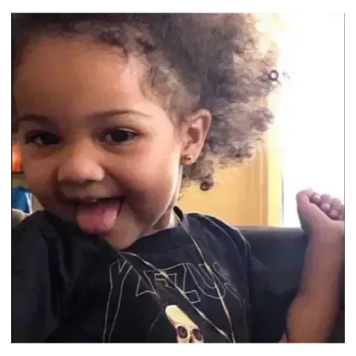 Menino pequeno com cabelo cacheado fazendo careta e mostrando a língua.