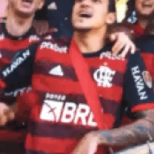 Jogador de futebol com camisa do Flamengo, marca BRL e HAVAN, com expressão de comemoração.