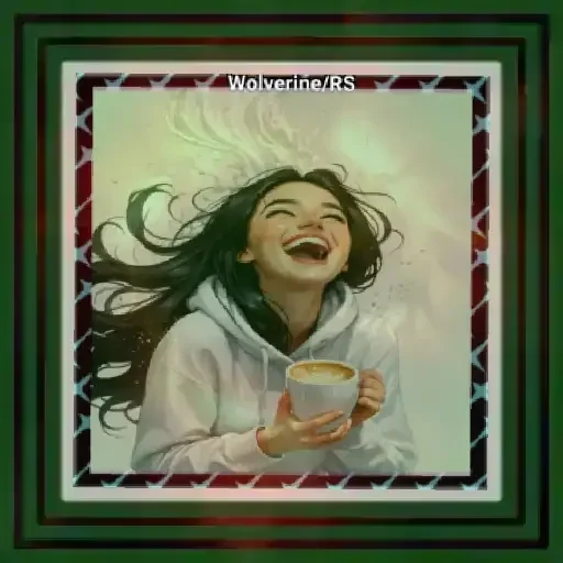 Uma jovem mulher com cabelos longos e escuros e um casaco branco sorri enquanto segura uma xícara de café. Ela está em um ambiente claro e arejado.