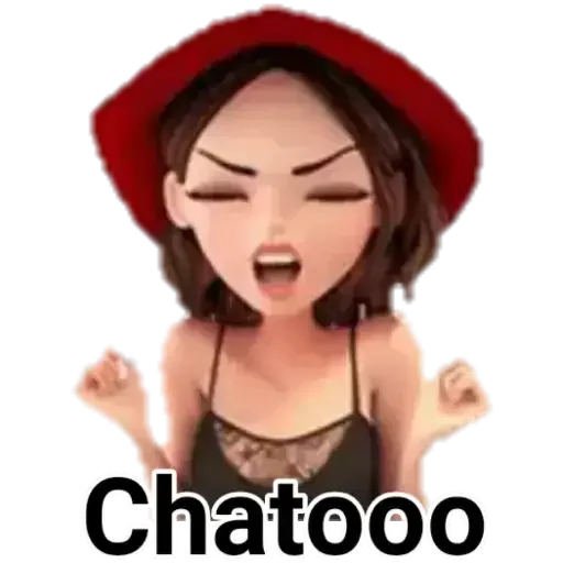 Uma mulher com chapéu vermelho e expressão de raiva ou surpresa, com os olhos fechados e boca aberta. Ela parece estar gritando ou reclamando, com as mãos levantadas. O texto 'Chatooo' aparece abaixo dela.