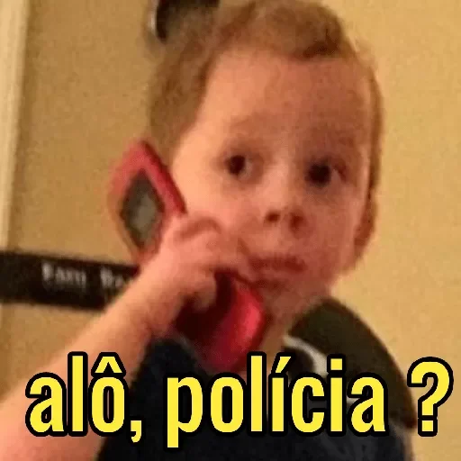 Menino ruivo falando ao telefone vermelho com a frase 'alô, polícia?'