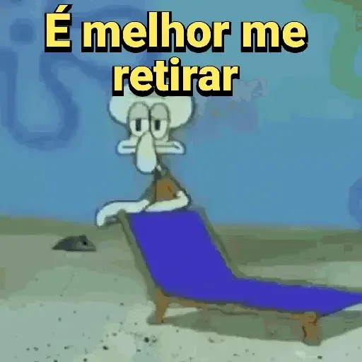 Um desenho do personagem Squidward, de 'Bob Esponja', sentado em uma cadeira de praia azul com uma expressão de descontentamento. O texto 'É melhor me retirar' aparece acima dele.