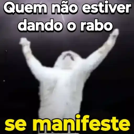 Um urso polar com as patas levantadas e a boca aberta, com o texto 'Quem não estiver dando o rabo se manifeste' em branco e 'se manifeste' em amarelo.