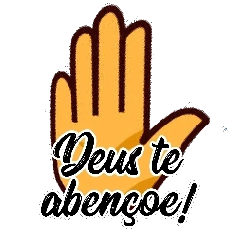 Uma mão amarela com a palma para frente e os dedos levantados, com o texto "Deus te abençoe!" sobreposto em preto com uma borda branca.