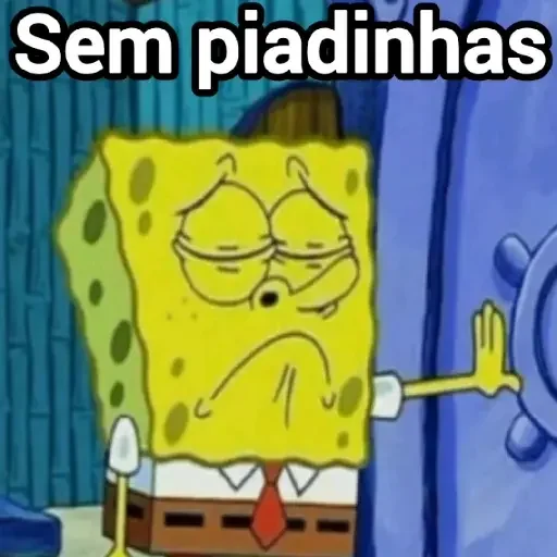SpongeBob com expressão séria e braço estendido, texto 'Sem piadinhas'
