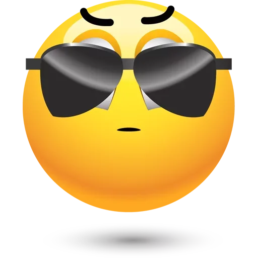 Emoji amarelo com óculos de sol e expressão relaxada, sobrancelhas levemente franzidas.