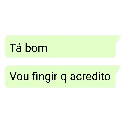 Uma figurinha com duas mensagens de texto em português: 'Tá bom' e 'Vou fingir q acredito', em uma cor verde claro.