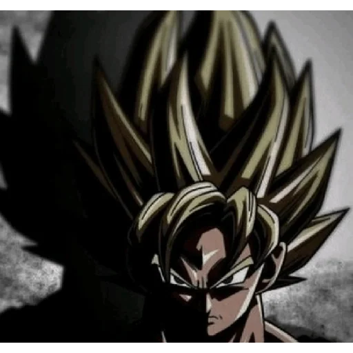 Personagem de anime com cabelo preto e amarelo espetado, olhos claros e expressão séria.