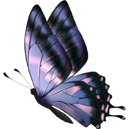 Borboleta com asas roxas e rosa, vista de lado, com veias pretas e detalhes rosa nas bordas das asas.