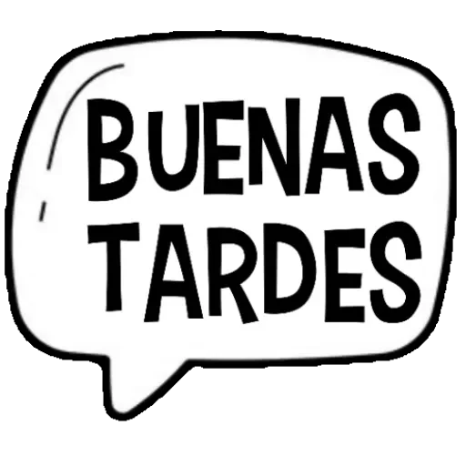 Um speech bubble com o texto 'BUENAS TARDES' em letras maiúsculas pretas.