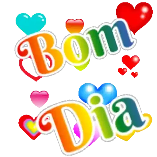 Um 'Bom Dia' colorido com letras grandes e corações coloridos ao redor.