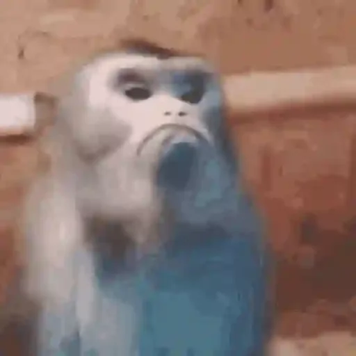 Macaco com expressão séria e olhar para cima, fundo castanho.