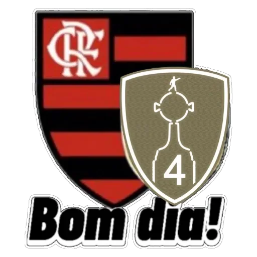 Escudo do Flamengo com escudo de campeão e o número 4, com a frase 'Bom dia!' embaixo.