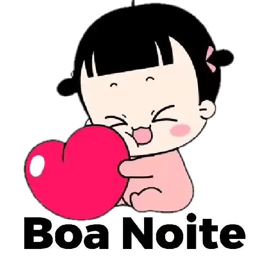 Menina fofa com banchos nos cabelos e rosa nos bochechas abraçando um coração vermelho gigante. 'Boa Noite' está escrito embaixo.