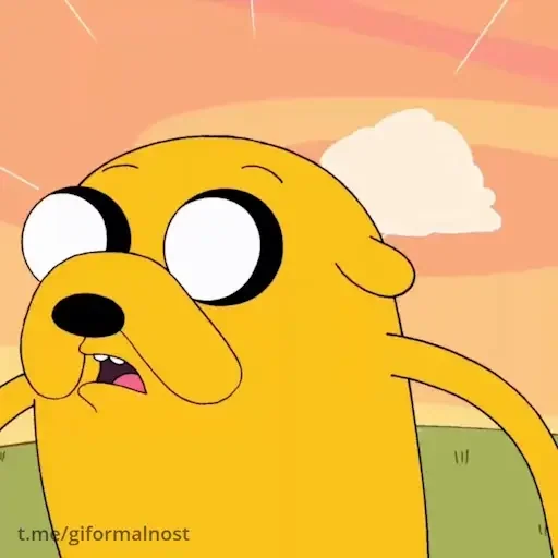 Cachorro amarelo de olhos grandes e arregalados, com expressão surpresa ou confusa, em um cenário de pôr do sol. O texto 'Lm gformalmost' aparece no canto inferior esquerdo.