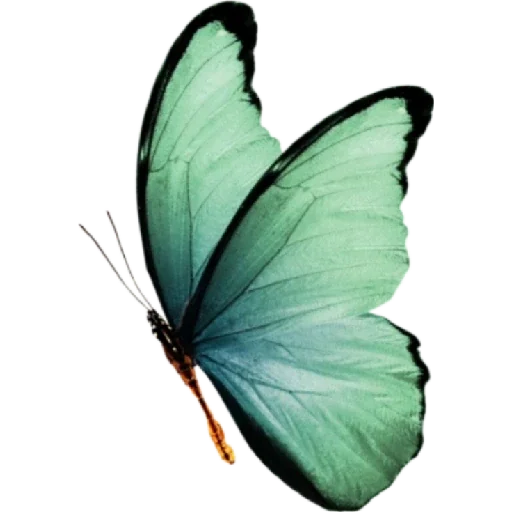 Borboleta com asas verdes azuis e borda preta, corpo laranja.
