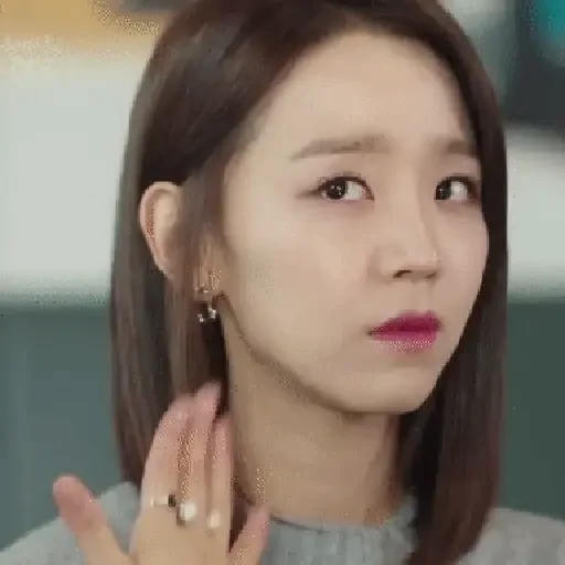 Uma jovem com cabelos castanhos e expressão de surpresa ou preocupação, com um emoji de rosto amarelo e sobrancelhas…