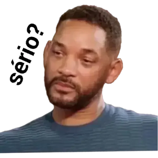 Homem com expressão de descrença, olhos semicerrados e texto 'sério?' ao lado da cabeça.