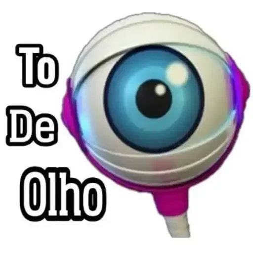 Um olho azul grande e detalhado com uma expressão curiosa, acompanhado do texto 'To De Olho'. O olho tem uma íris azul com um reflexo de luz e uma pupila preta.