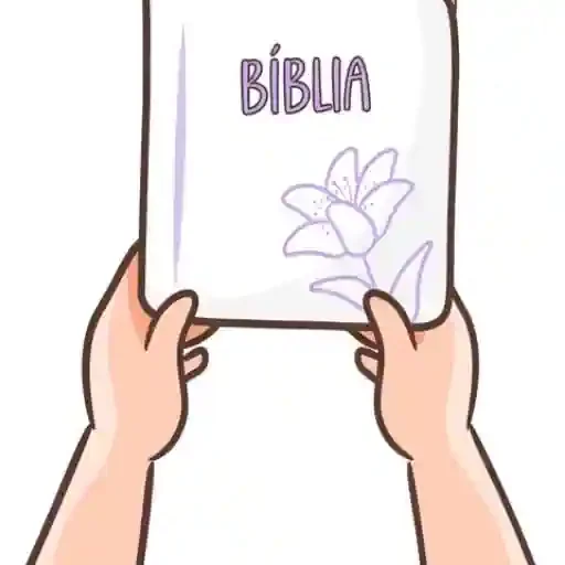 Mãos segurando uma Bíblia com uma flor desenhada na capa.