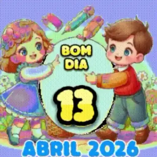 Um desenho de um girassol com um rosto sorridente e a frase 'BOM DIA' em verde. Abaixo, um calendário com '2026 ABRIL'.