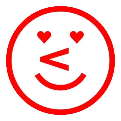 Um rosto sorridente com olhos em forma de coração e uma seta no lugar da boca, tudo em vermelho dentro de um círculo vermelho.